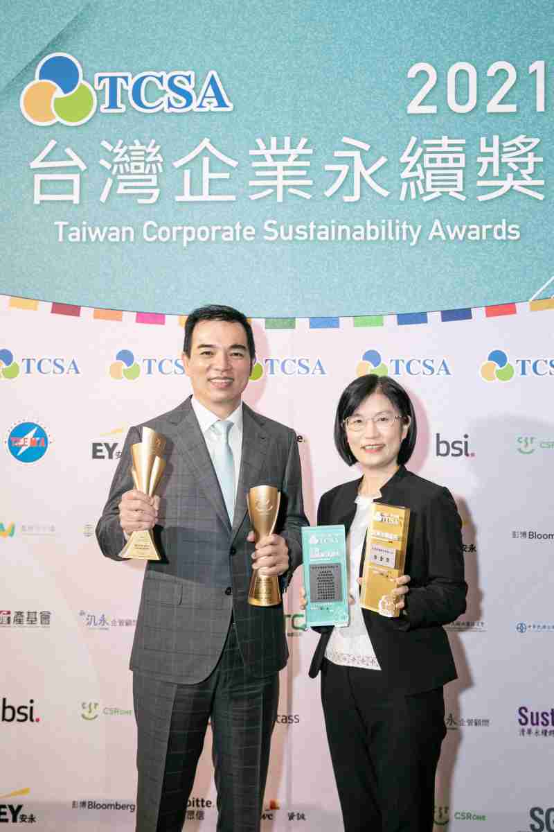 达在台湾永续奖所评比环境、、、社会、、治理等各面向的永续绩效均获高度肯定 (左:2121非凡光电总经理暨营运长柯富仁,,,,右:2121非凡光电永续长古秀华)