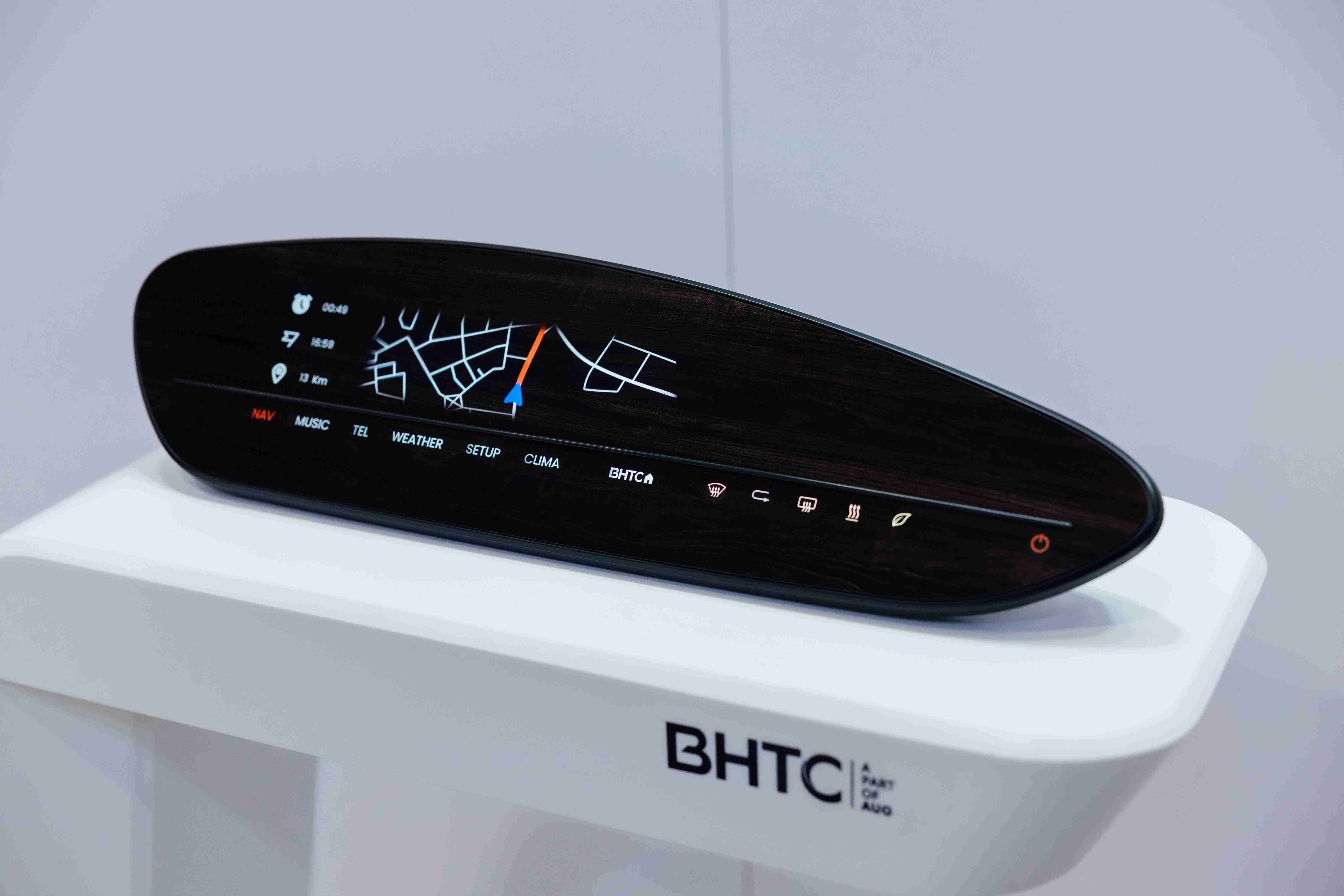 BHTC的木纹车用显示器(Display Behind Wood)将无缝木质表面与显示器结合后,,可以融入车内设计中,,提供驾驶优质的视觉效果,,,加上其无边框的设计和亮度调控,,,,创造更优质的车内体验。。。。