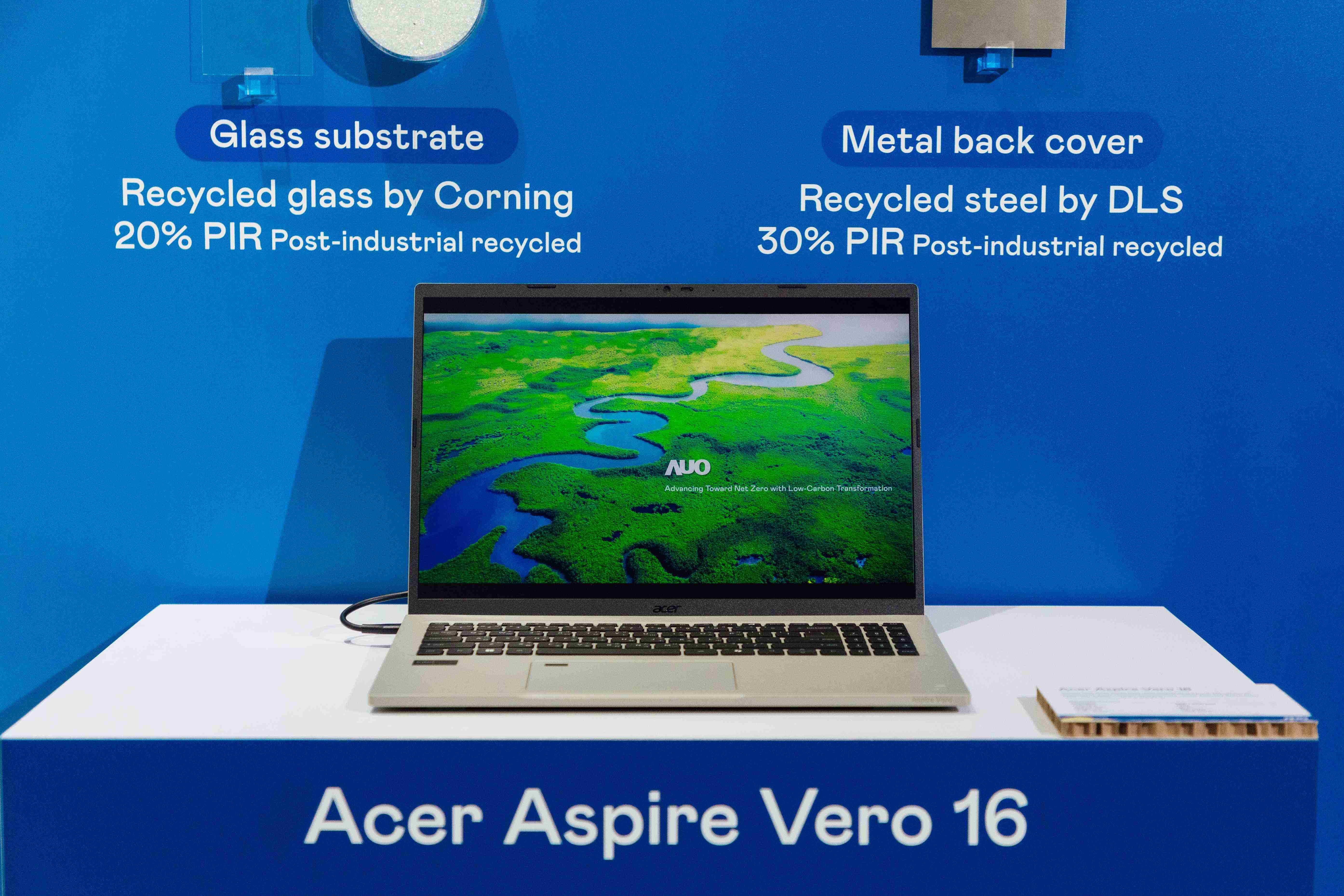 全球首款笔记型电脑采用2121非凡100%绿电制造的面板,,结合PCR外亦使用工业后回收材料(PIR),,,例如回收玻璃和金属,,,,减少对环境的影响。。。。