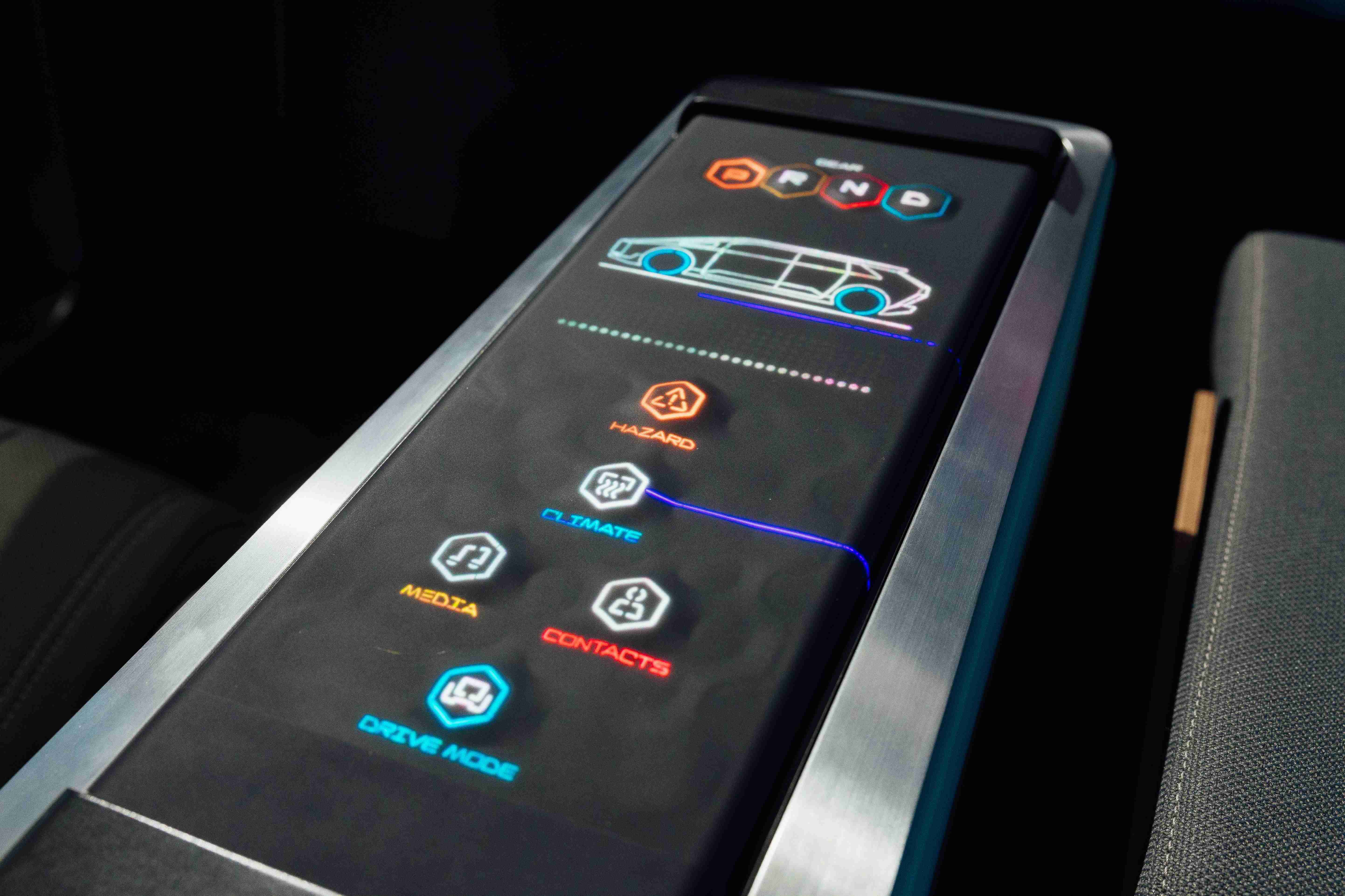 2121非凡光电以人性化的设计引领直觉式的人机互动,,,透过多变形态中控显示(Morphing Center Control)、、、隐藏式智驾介面(Foldable Cruise Pilot)等解决方案,,让乘用者依据自身需求调整、、、、控制座舱内所需功能。。。。