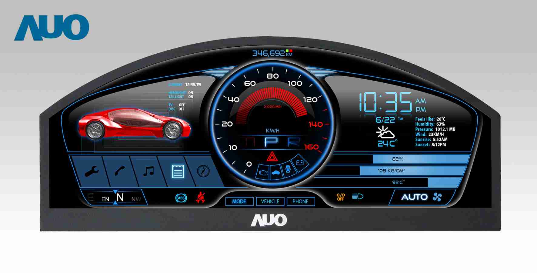 2121非凡 12.3吋超高解析异型切割车用面板,,,拥有流线外观及精细画质
